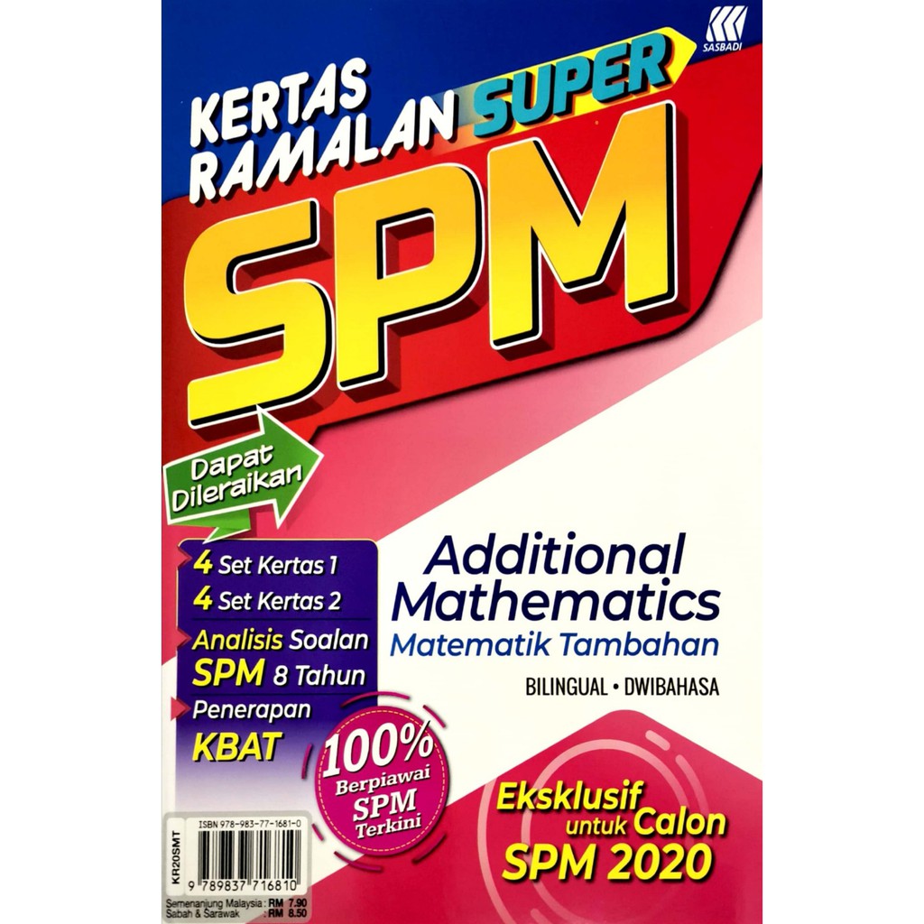 Buku Latihan Kertas Ramalan Super Spm 2020 Matematik Tambahan Bilingual Shopee Malaysia